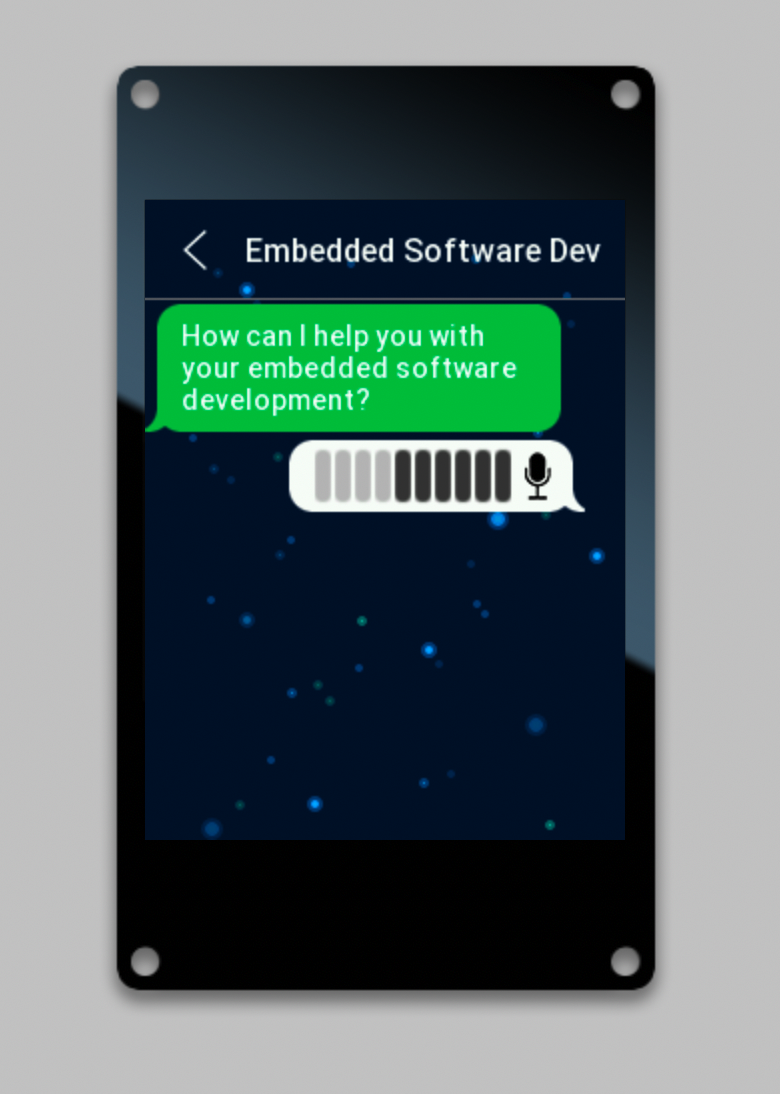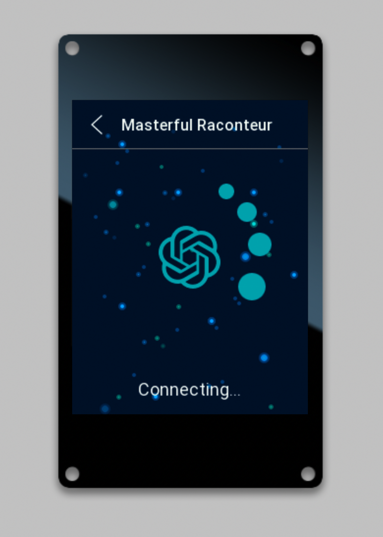The conversationalAI a comprehensive interactive voice chat app. It uses integrates support for all the key hardware features of Moddable Six include the touch screen, speaker, microphone, and Wi-Fi. It works with major AI and voice services including OpenAI, Google Gemini, Anthropic Claude, ElevenLabs, Deepseek, and Hume.