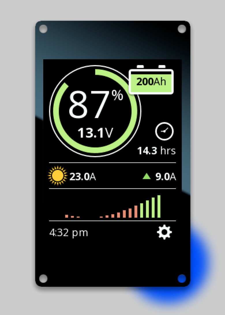 The Moddable Six touch screen delivers the most fluid, responsive user experience possible on an embedded device. The bright OLED display's brilliant colors are viewable from any angle. Animations run at over 60 FPS over a high-speed 8-bit display bus (the 1-bit display bus on most developer boards draws many times slower).