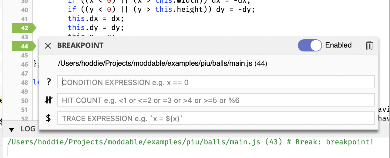Note: For developers who prefer to use a console log for debugging, xsbug-log maybe used instead of xsbug. See below for details.